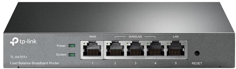 Szerokopasmowy router TL-R470T+ z równoważeniem obciążenia pasma stanowi idealne, ekonomiczne rozwiązanie do zastosowań typowych dla małych firm. Trzy z pięciu portów urządzenia mogą zostać skonfigurowane do działania w roli portów WAN lub portów LAN, co wraz z głównym portem WAN, daje możliwość wykorzystania do 4 łącz internetowych jednocześnie. Router TL-R470+ zapewnia możliwość wykorzystania różnych algorytmów równoważenia obciążenia pasma, zaawansowanej funkcji QoS oraz firewall aby zapewnić wydajny i ciągły dostęp do Internetu.