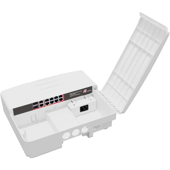 Getfort GF-6222-GGUF-PO to profesjonalny, zewnętrzny przełącznik PoE przeznaczony do wymagających zastosowań w monitoringu i sieciach CCTV. Urządzenie wyposażone jest w 8 portów PoE Gigabit Ethernet oraz 2 porty PoE Gigabit uplink, a także 2 porty SFP. Całkowita moc zasilania PoE wynosi 120W, z obsługą wysokiego poboru mocy do 60W na port (PoE bt). Przełącznik wspiera funkcję AI Watchdog, która automatycznie monitoruje i resetuje porty w przypadku wykrycia awarii podłączonych urządzeń. Dodatkowa ochrona przepięciowa 6KV oraz przeciw wyładowaniom elektrostatycznym 8KV zapewnia niezawodność nawet w trudnych warunkach zewnętrznych.