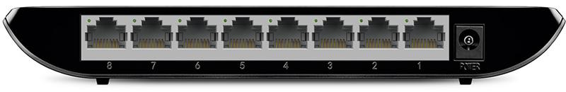 Przełącznik Ethernet posiadający 8 portów Ethernet, każdy pracujący z maksymalną prędkością sięgającą 1000Mbps. Charakterystyczną cechą tego przełącznika jest wysoka wydajność sięgająca 16Gbps TL-SG1008D pozwala w prosty i szybki sposób zwiększyć przepustowości w sieci co wpływa bardzo korzystnie na czas przesyłania zarówno danych multimedialnych, obrazów . Model ISO oraz innych dużych plików. Zaimplementowana technologia „Green Ethernet” pozwala na oszczędne zarządzanie poborem prądu, automatycznie wyłącza porty na których nie ma transmisji oraz dopasowuje parametry elektryczne portu do długości użytego przewodu.