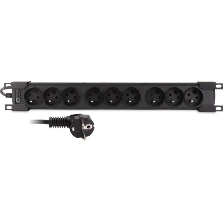 Pozioma, 9-portowa listwa zasilająca z wtykiem francuskim idealnie nadaje się do zasilania wszystkich urządzeń podłączonych w szafie rack. Listwa ma wysokość 1U i rozstaw mocowań idealnie pasująca do wszystkich szaf 19 cali, zarówno wiszących jak i stojących.