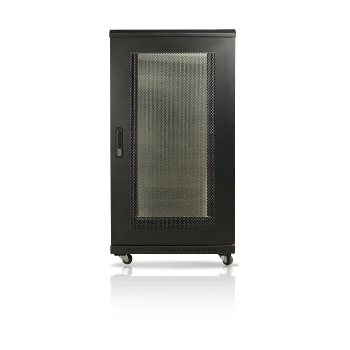 Zastosowanie przednich drzwi perforowanych zapewnia dodatkową, lepszą cyrkulację powietrza wewnątrz szafy. Dzięki temu w znacznym stopniu poprawione zostaje chłodzenie zamontowanych urządzeń i ich żywotność.