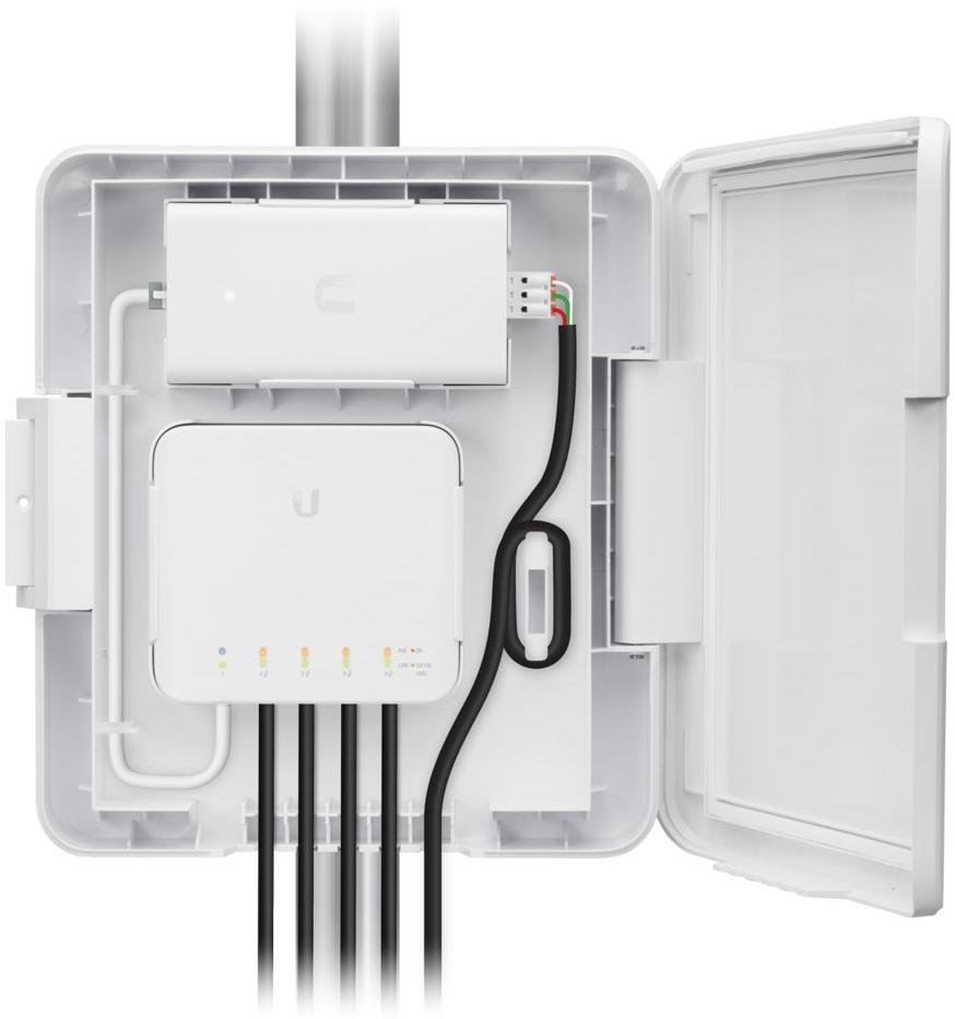 USW-Flex-Utility to odporna na warunki atmosferyczne obudowa zewnętrzna zaprojektowana do użytku z UniFi Switch Flex.