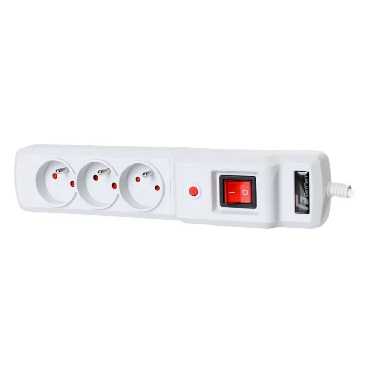 Listwa antyprzepięciowa Getfort 3A jest Polskim produktem, który wyróżnia niewielkimi rozmiarami, dzięki czemu możemy ją umieścić w dowolnym i widocznym miejscu. Posiada 3 gniazda sieciowe z uziemieniem, dwubiegunowy podświetlany przełącznik i bezpiecznik automatyczny, dzięki czemu po wystąpieniu przepięcia nie wymaga wymiany bezpiecznika na nowy.