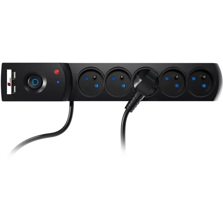 Listwa zasilająca z bezpiecznikiem i układem przeciwprzepięciowym professional, 5 gniazd, długość 1,5m, 10A, 230V, 2300W 2 porty USB 3,2A, czarny