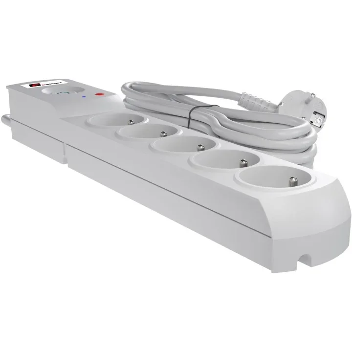 Listwa zasilająca z bezpiecznikiem i układem przeciwprzepięciowym professional, 5 gniazd, długość 1,5m, 10A, 230V, 2300W, szary