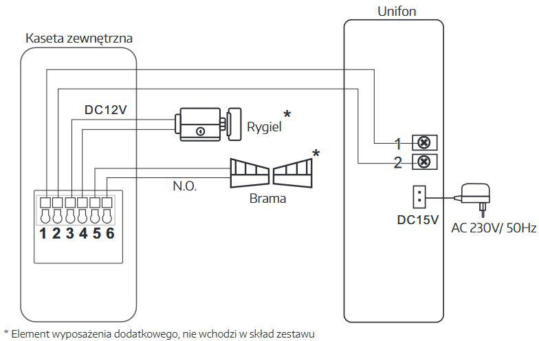 • Ilość przewodów łączących panel zewnętrzny i unifon: 2