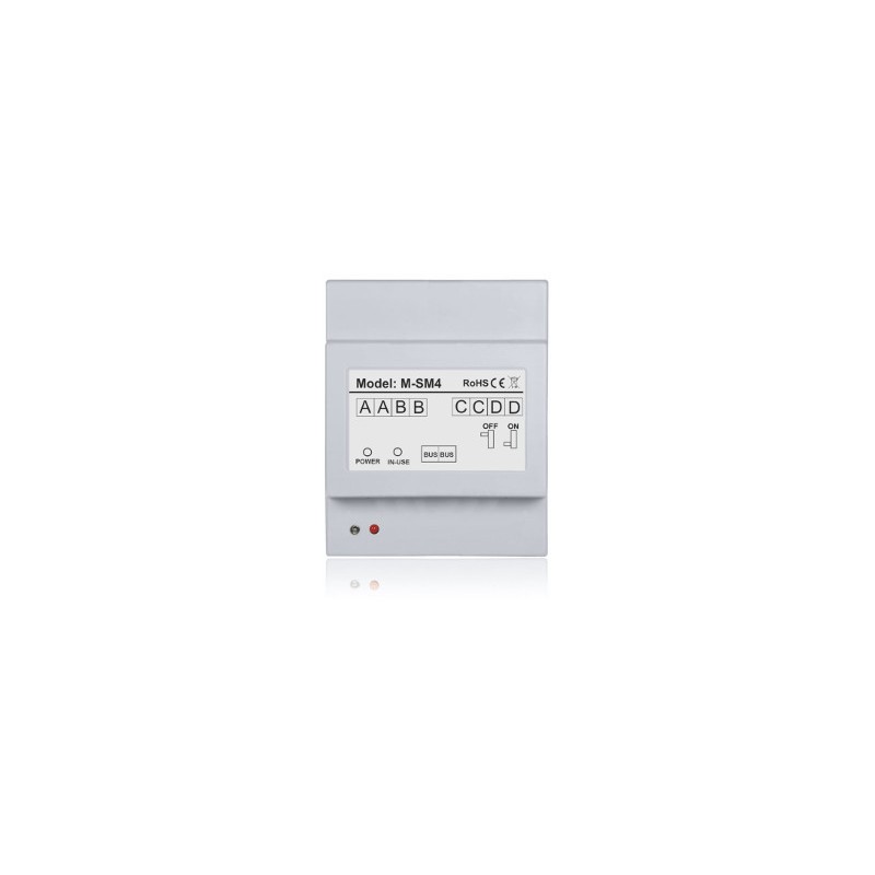 M-SM4 to specjalny moduł, w pełni kompatybilny z systemem VIDOS DUO, umożliwiający obsługę do 4 stacji bramowych. Może być również wykorzystany do rozdzielenia sygnału w rozległych instalacjach, w których ilość monitorów i odległości są duże uniemożliwiając połączenie szeregowe.