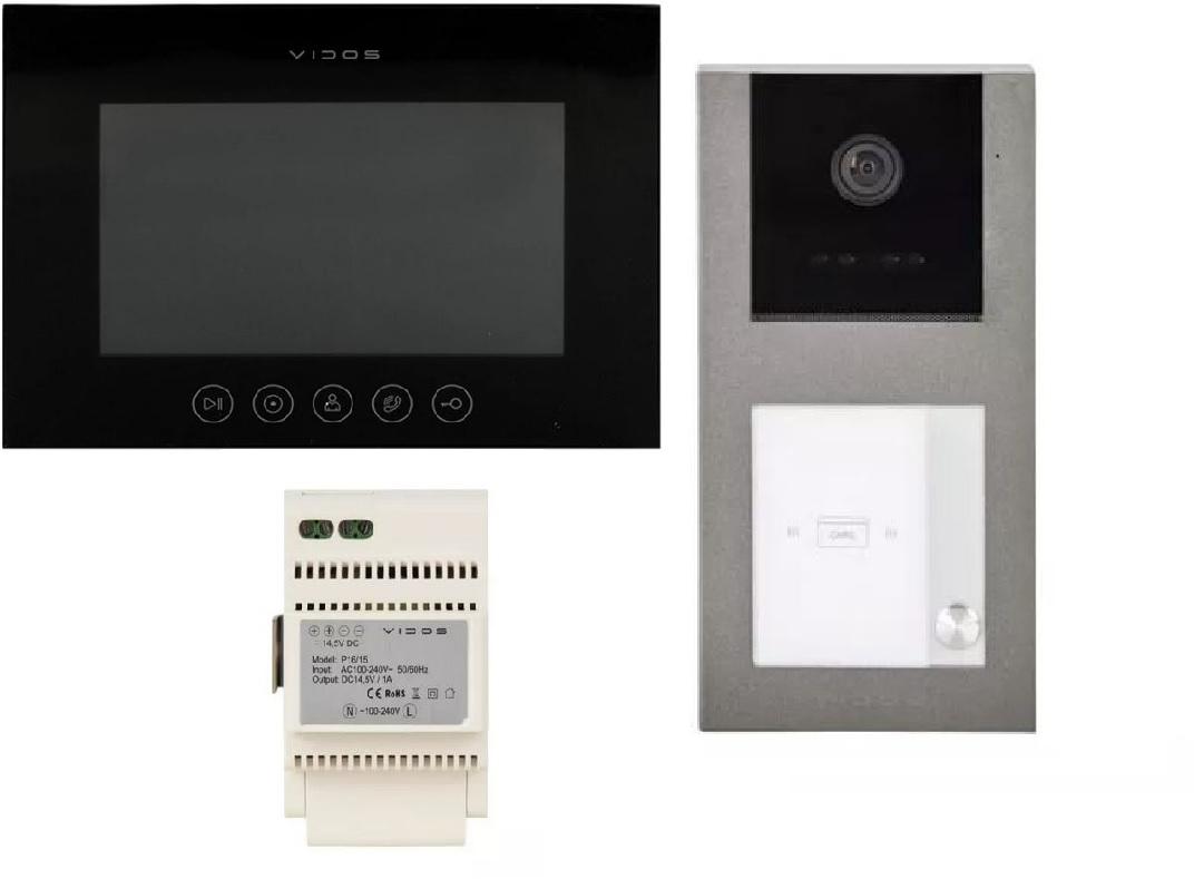 - Do zestawu obejmującego wideodomofon VIDOS M11B-X i stację bramową S11-1 dołączony jest zasilacz na szynę DIN – 14,5V DC/1A! Nie bój się, że Twój system kontroli dostępu zostanie dotknięty brakami zasilania!