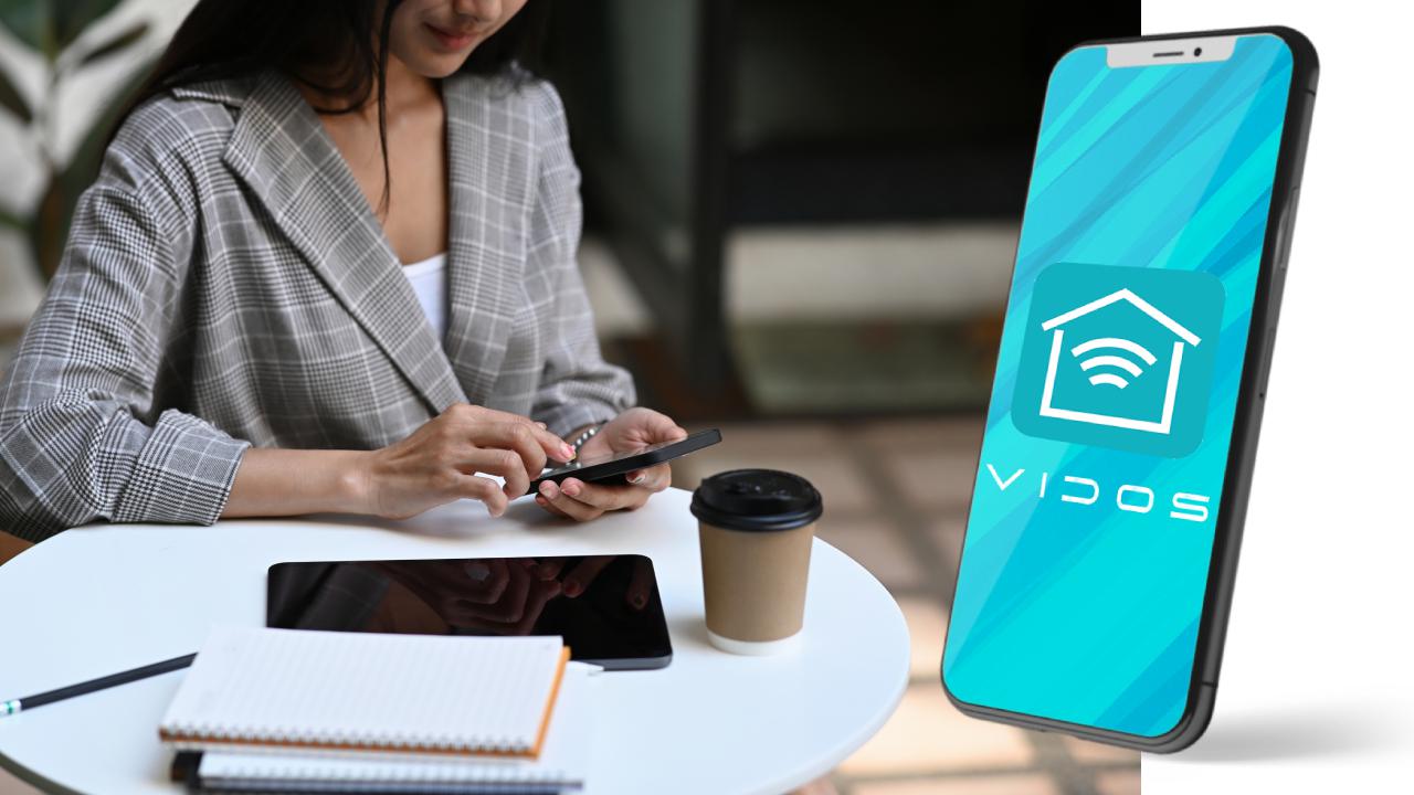 - Aplikacja mobilna Vidos X to darmowa aplikacja dostępna na systemy Android i iOS, która pozwala na wygodną obsługę systemu wideodomofonu z dowolnego miejsca, gdzie użytkownik ma dostęp do internetu.