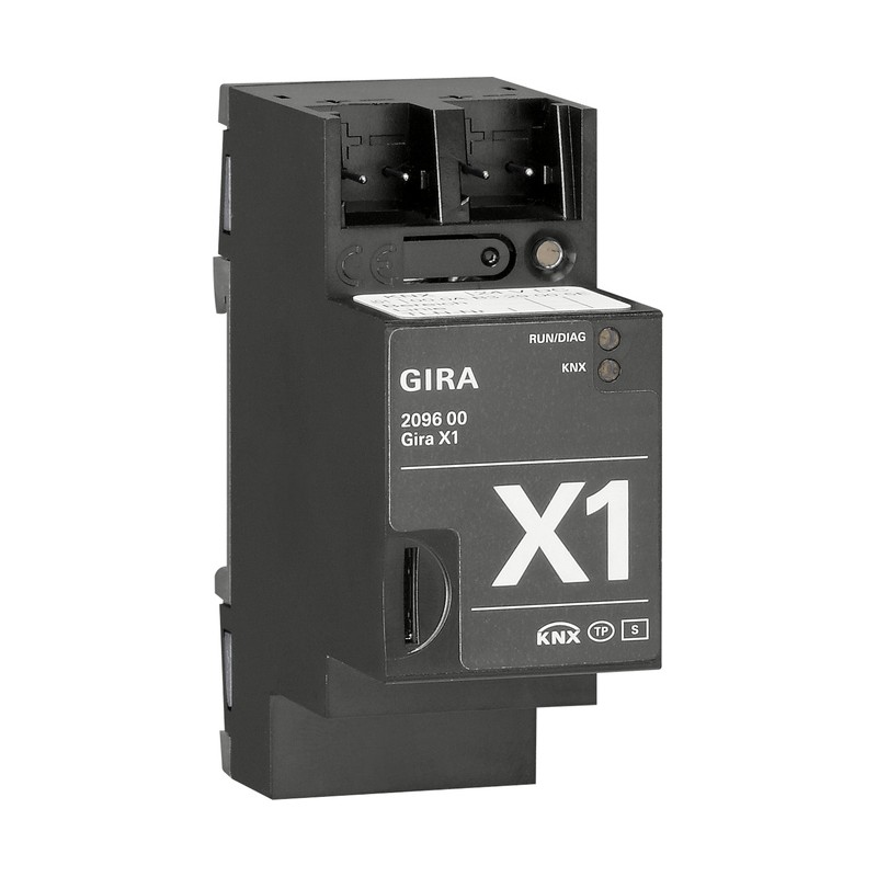 - Gira X1 (nr art.: 2096 00) ma standardowo 250 funkcji i 1000 punktów danych. Dostępne są odpłatnie pakiety rozszerzające do Gira X1.