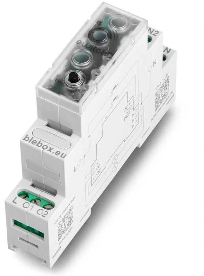Podwójny przełącznik "ON/OFF" lub "WŁĄCZ NA CZAS" na szynę DIN BleBox switchBoxD DIN - najważniejsze cechy:
