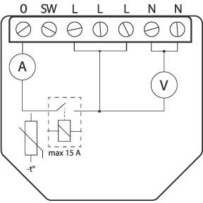 - Przekaźnik: 1 wyjście (O), 1 wejście przyciskowe (SW1), wejścia zasilania (N/L lub +/GND)