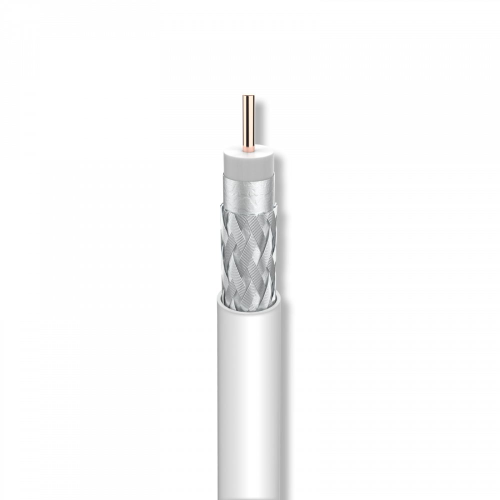 Kabel koncentryczny RG-6 z żyłą miedzianą i aluminiowym oplotem (Cu/Al). Doskonałe pokrycie oplotu (77%). Kabel 16VAtC, podwójne ekranowanie, osłona zewnętrzna: PVC.