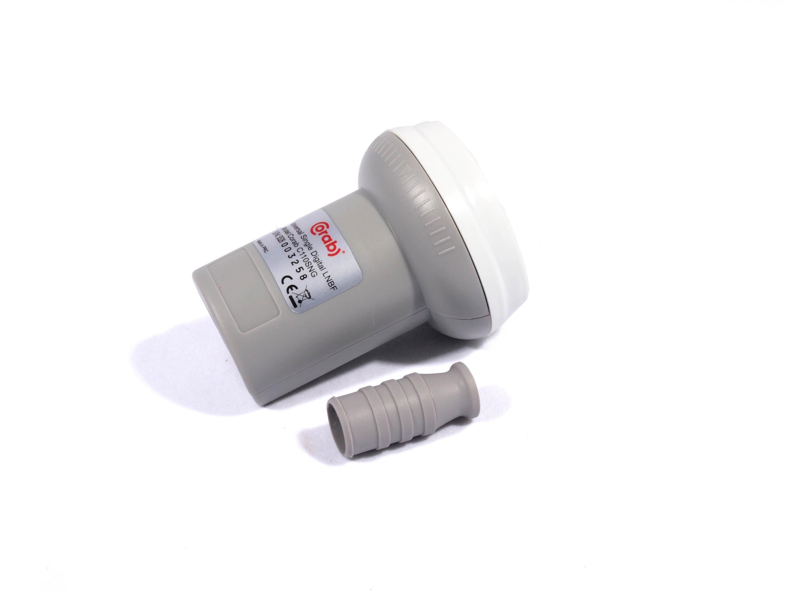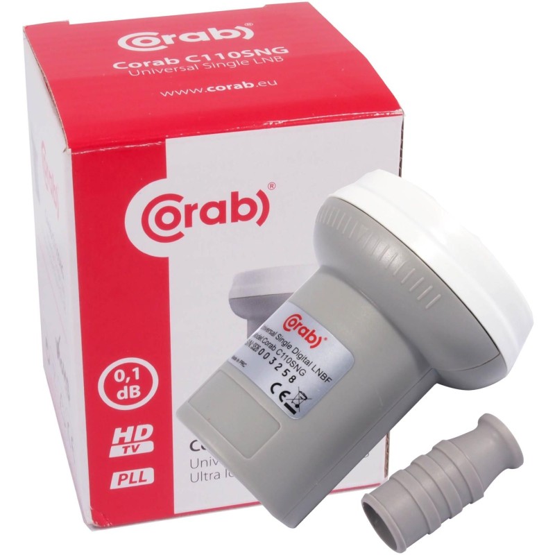 Konwerter Singiel Corab, który posiada jedno wyjście i może obsługiwać jeden tuner satelitarny Pracuje w 2 polaryzacjach i 2 zakresach. Konwerter testowany w każdych warunkach atmosferycznych o wysokim wzmocnieniu.
