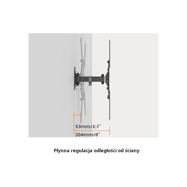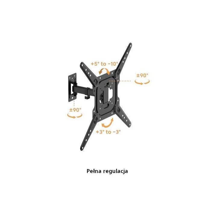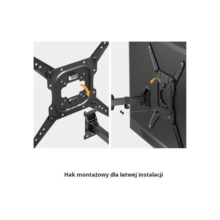 W pełni regulowany uchwyt Getfort GF-FM2365-30 umożliwia montaż telewizorów o przekątnej 23-65 cali i wadze do 30kg. Dzięki dużej regulacji wysięgu, obrotu i pochylenia pozwala na optymalne dostosowanie pozycji oglądania. Dzięki haczykowi montażowemu powieszenie ekranu staje się dużo prostsze.
