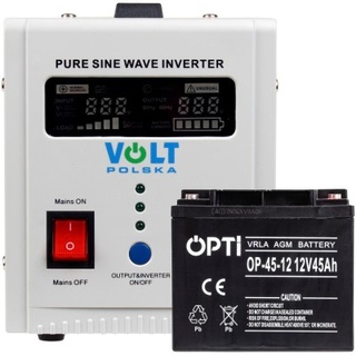 Zestaw do awaryjnego zasilania 45Ah 800W, składający się z akumulatora VOLT POLSKA 12V 45Ah z serii OPTI oraz przetwornicy 12V 500/800W to kompletny zestaw zasilania awaryjnego!