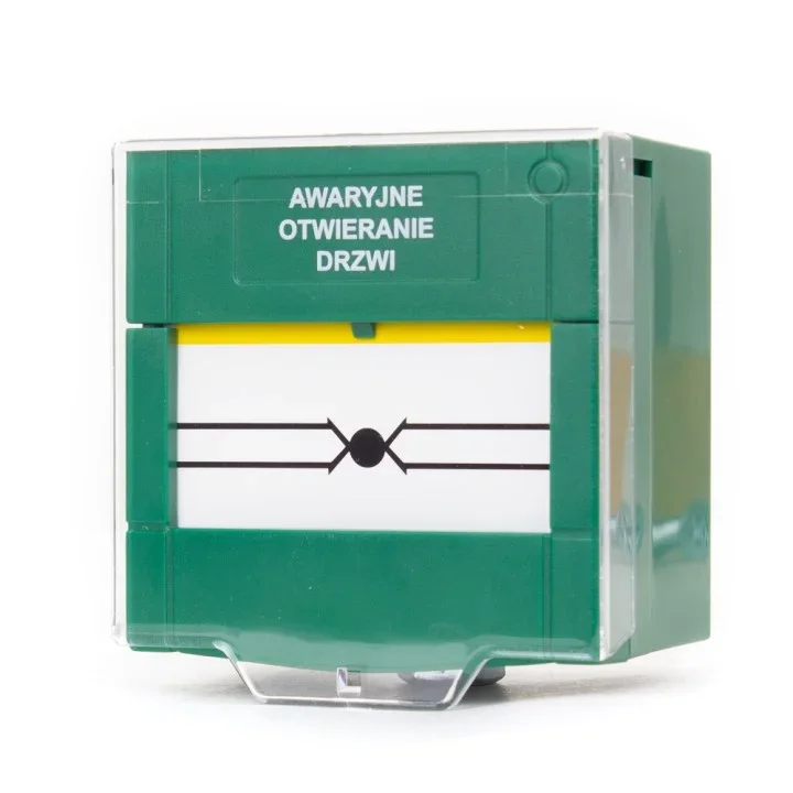 Ewakuacyjny przycisk wyjścia wykorzystywany jest jako element awaryjnego otwierania drzwi w systemach kontroli dostępu. Posiada on możliwość resetowania za pomocą kluczyka dołączonego do zestawu, a plastikowa szybka chroni przed niepożądanym, przypadkowym zwolnieniem drzwi.