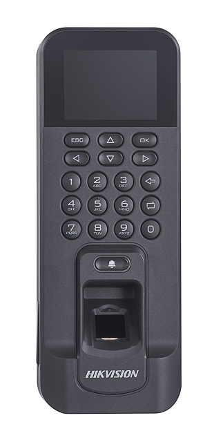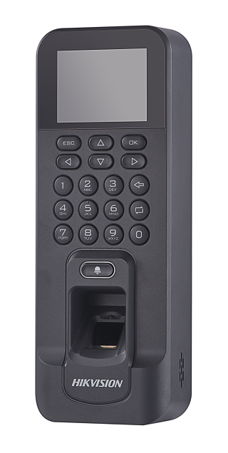 HIKVISION DS-K1T804AMF to terminal kontroli dostępu jak i rejestracji czasu pracy. Może pracować autonomicznie, ale również wykorzystamy go jako urządzenie wykonawcze w większych systemach. Pozwala na trzy sposoby autoryzacji (czytnik zbliżeniowy, PIN, odcisk palca).