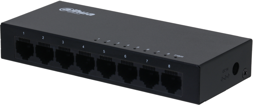 - Obsługuje osiem portów o przepustowości 10/100/1000 Mb/s