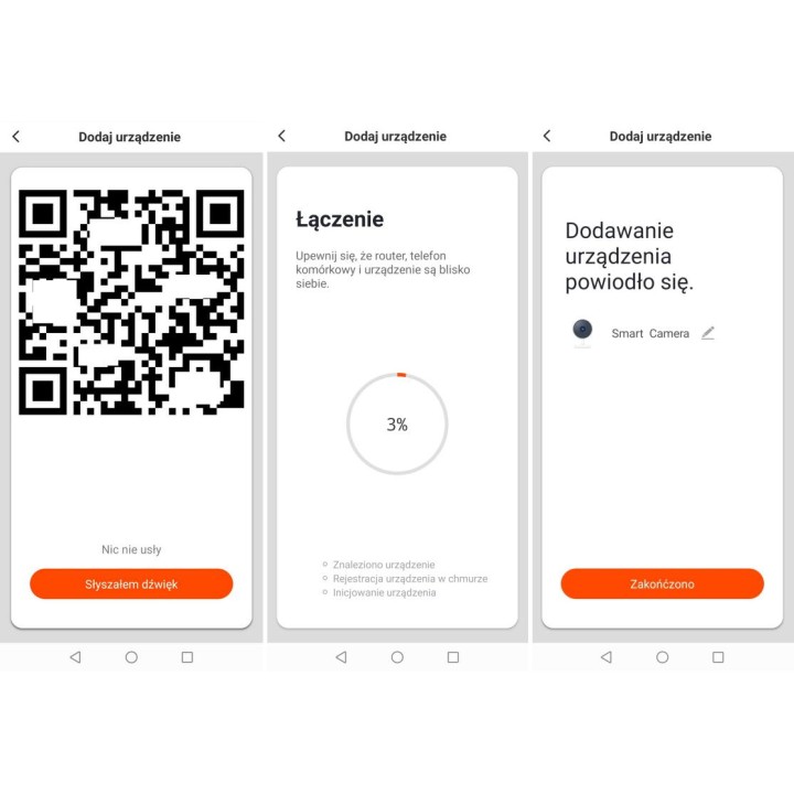 - Po prawidłowym odczytaniu kodu przez kamerę, usłyszysz potwierdzenie z głośnika. Następnie kliknij „Słyszałem dźwięk”.