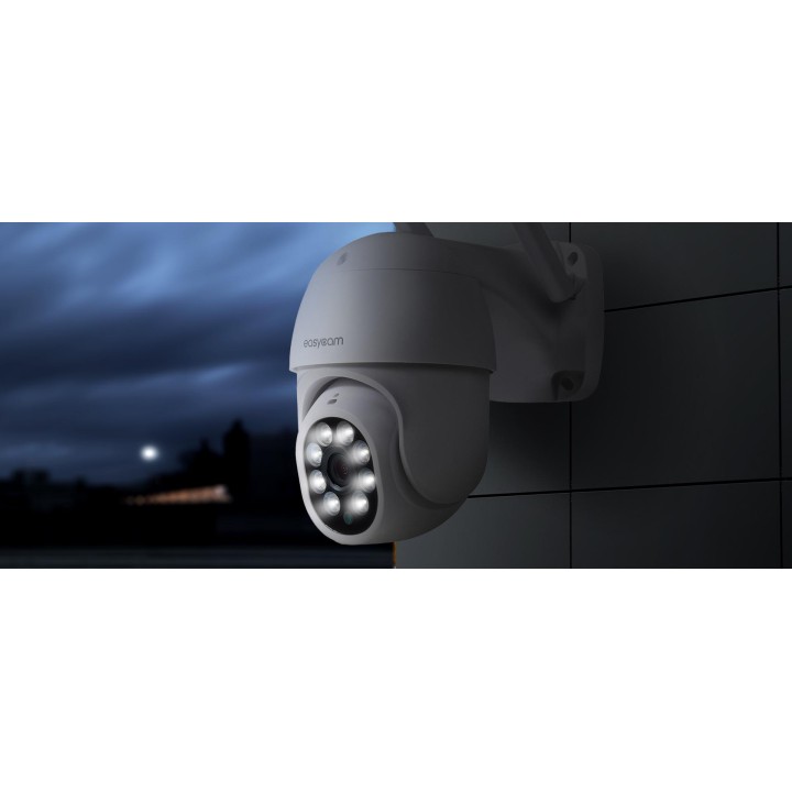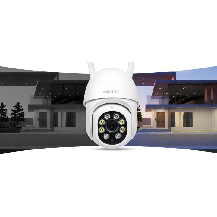 Dzięki wbudowanemu trybowi nocnemu z czterema diodami IR oraz czterema diodami ciepłego światła, kamera EasyCam EC-3PT4L4IR-AI zapewnia doskonałą widoczność nawet w całkowitych ciemnościach.