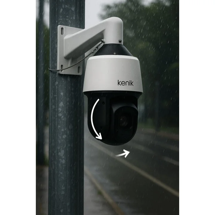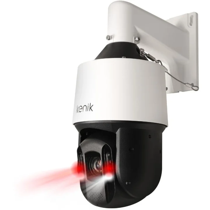 Obrotowa kamera IP Kenik idealnie sprawdzi się w systemach monitoringu wymagających najwyższej jakości obrazu. Możliwość sterowania kamerą przez użytkownika, ustawienia ścieżek patrolowych, daleki zasięg IR pozwala na monitorowanie dużego obszaru i zapewnienie bezpieczeństwa osobom jak również zabezpieczenie mienia. Zastosowany w niej przetwornik 5MPX oraz zaawansowana kompresja H.265+ zapewnia rozpoznanie wielu szczegółów zarówno w dzień jak i w nocy. Nowoczesny reflektor z diodami dalekiego zasięgu pozwala na widoczność do 200m przy panującej całkowitej ciemności otoczenia. Co więcej użytkownik może skorzystać z inteligentnej analizy obrazu dla zwiększenia bezpieczeństwa chronionego obiektu. Wiele innych funkcjonalności tj. DEFOG, ROI, sprzętowy WDR dba o to, aby obraz był jak najbardziej wyraźny, bez zniekształceń oraz pozwolił na identyfikację osób czy też przedmiotów. W dodatku kamera może pracować w chmurze, a połączenie jest niezwykle proste. Użytkownik z dowolnego miejsca na świecie przy użyciu swojego smartfona może sprawdzić co się dzieje w monitorowanym obiekcie. Dodatkowo zastosowano w kamerze Kenik zasilanie Power over Ethernet (POE) dzięki czemu nie musimy kłaść dwóch przewodów, gdyż wystarczy nam sama skrętka do połączenia kamer z pozostałymi urządzeniami w sieci. Zastosowany obiektyw motozoom, który pozwala na 32-krotny zoom optyczny i zmiany kąta widzenia kamery w zależności od obserwowanego obiektu. Duża zaletą na pewno jest również obsługa serwerów NAS i możliwość bezpośredniej rejestracji obrazu wideo na dysku sieciowym.