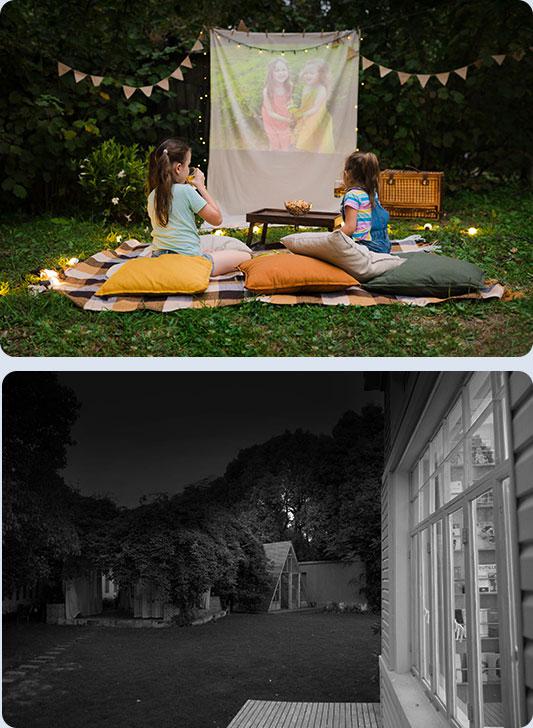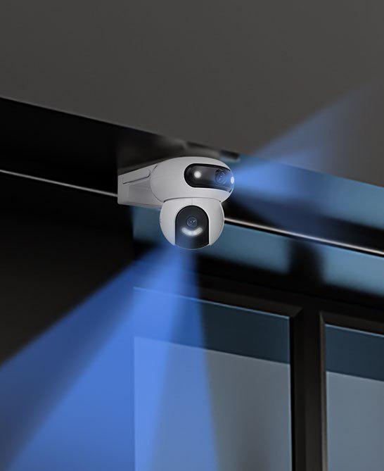 Dzięki podwójnym obiektywom kamera H90 jednocześnie obejmuje szeroki obszar i rejestruje detale – idealna do monitorowania bramy, ogrodu, wejścia czy podjazdu.