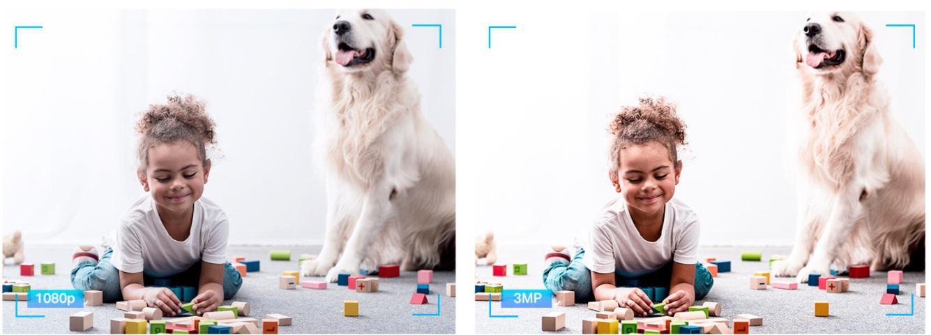 Nagrywanie w rozdzielczości 3 Mpx zapewnia niezwykłą ostrość i jakość obrazu ze względu na dużą liczbę pikseli matrycy. Umożliwia to rozpoznawanie zarejestrowanych postaci, nawet gdy znajdują się w dużej odległości od kamery.