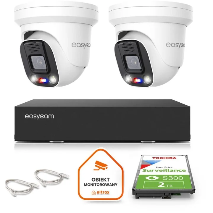 Zestaw monitoringu IP Easycam 5MP – 2 kamer z aktywnym odstraszaniem, rejestratorem i dyskiem 2TB