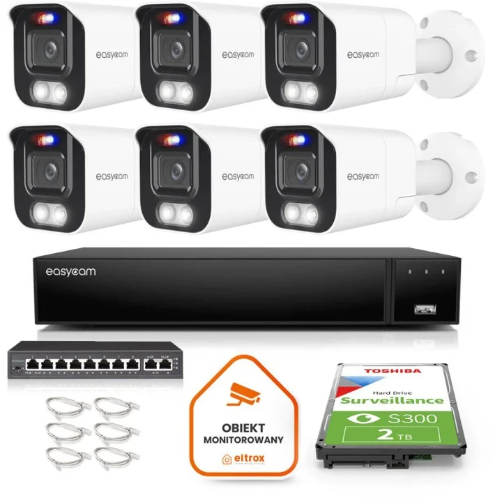 Zestaw monitoringu IP Easycam 5MP z 6 kamerami – aktywne odstraszanie, rejestrator i dysk 2TB