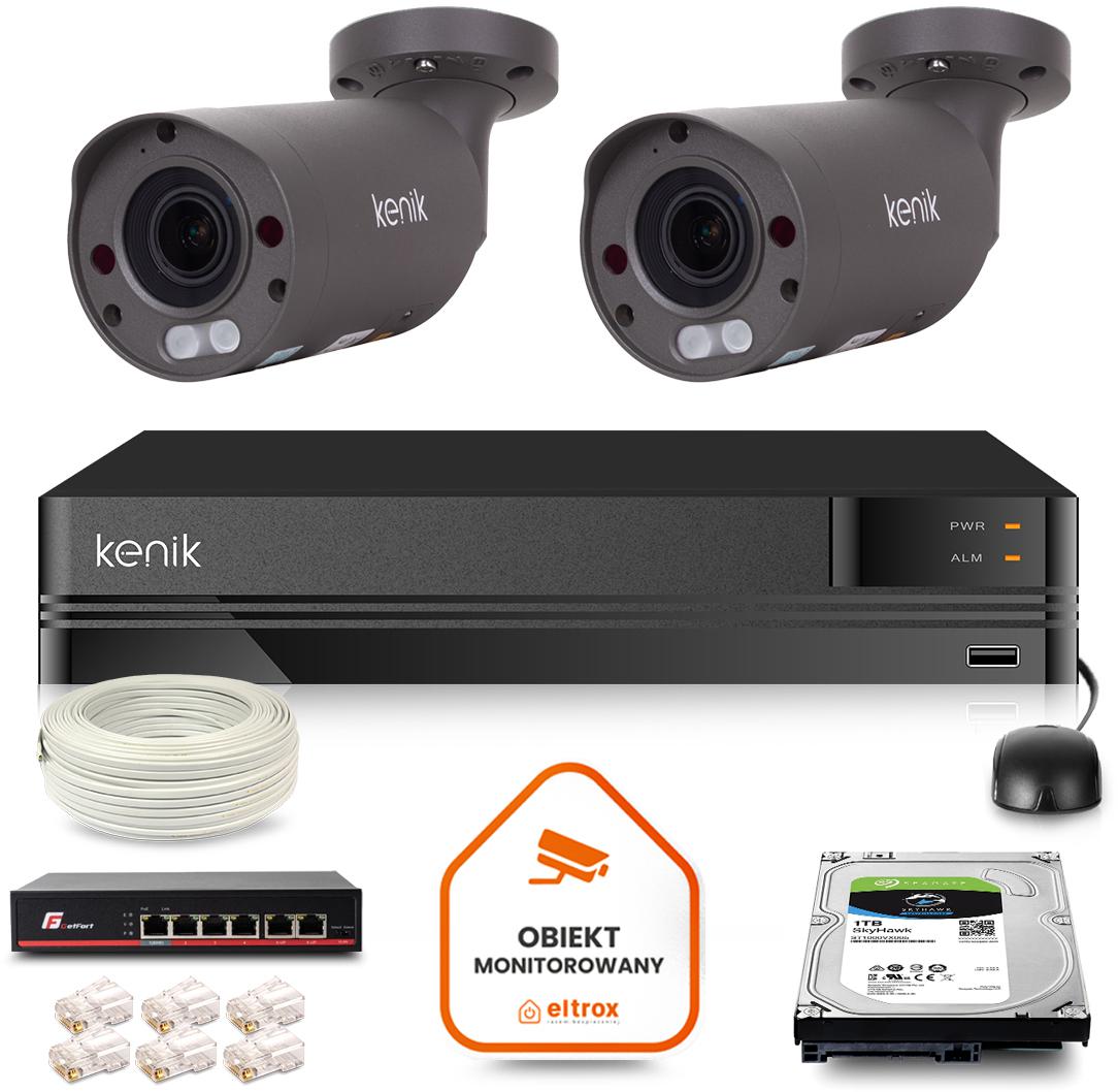 Zestaw monitoringu IP Kenik 2 kamery tubowe 5MPx IR 60m dysk 1TB