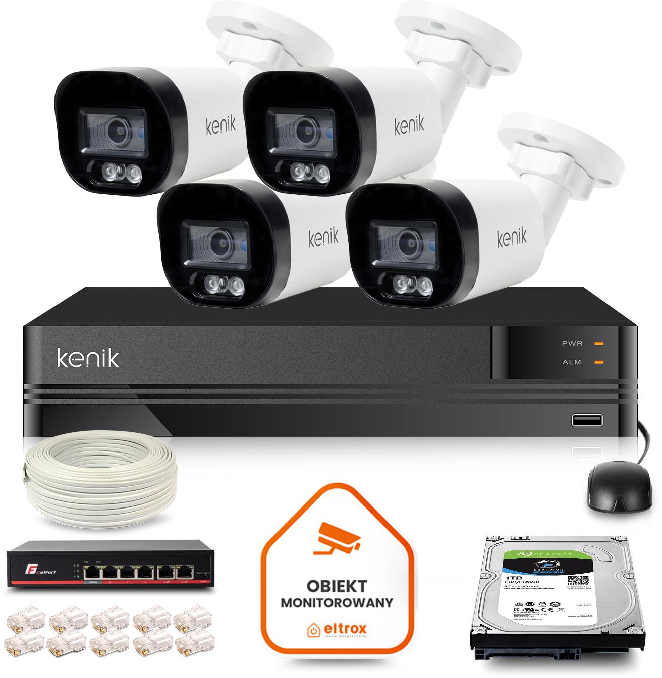 Zestaw monitoringu IP Kenik 4 kamery tubowe 4MPx 1TB