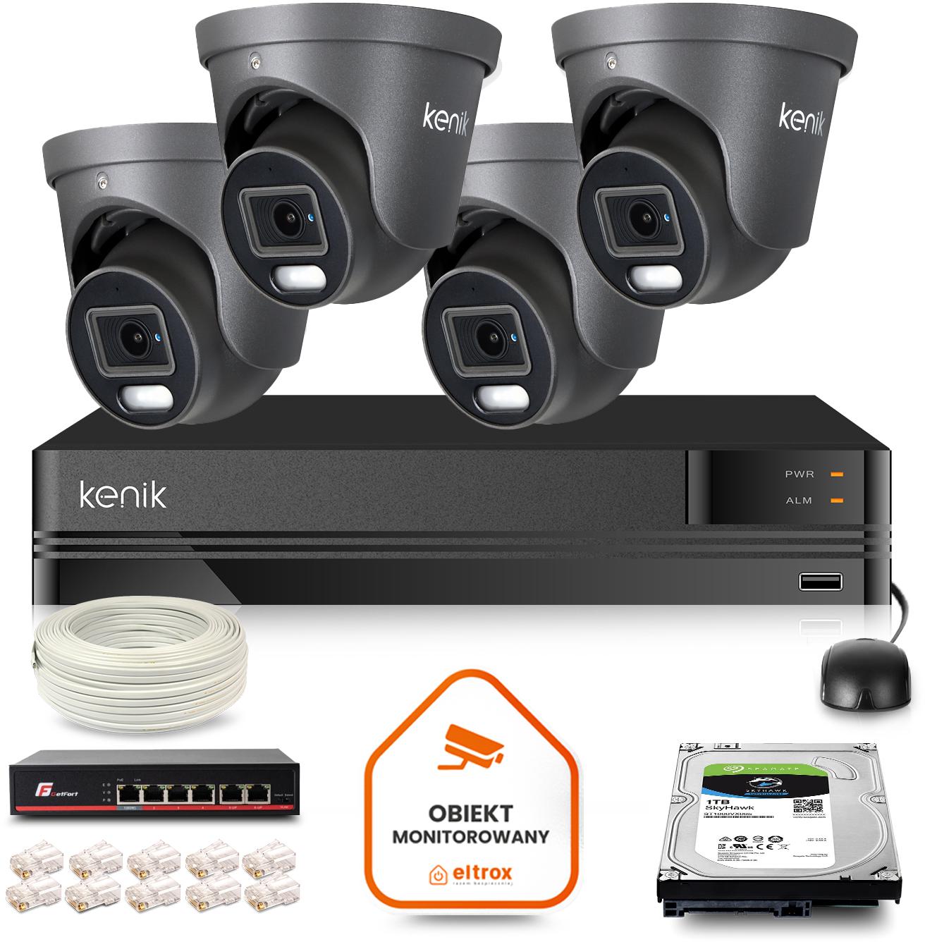 Zestaw monitoringu IP Kenik 4 kamery zewnętrzne 4MPx dysk 1TB