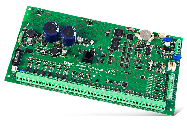 Płyta główna centrali alarmowej od 16 do 64 wejść i wyjść, spełniającej wymagania normy na poziomie GRADE-3. Dzięki pełnej zgodności z wymaganiami EN50131 Grade 3, centrale serii INTEGRA Plus doskonale sprawdzą się w realizacji zaawansowanych systemów zabezpieczenia w obiektach o szczególnie dużym zagrożeniu włamaniem – np. bankach, sklepach jubilerskich czy budynkach użyteczności publicznej. Centrale te charakteryzują się rozbudowaną funkcjonalnością, co pozwala zastosować je do realizacji systemów kontroli dostępu czy nawet systemów inteligentnego budynku.