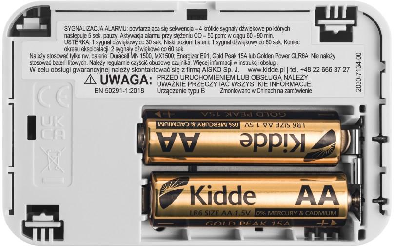 - Dodatkową cechą czujnika tlenku węgla Kidde 2030-DCR jest jego układ kontroli sprawności, który monitoruje na bieżąco stan sensora, jego wewnętrzne obwody oraz poziom naładowania baterii. W przypadku wykrycia nieprawidłowej pracy lub niskiego poziomu naładowania baterii, urządzenie Kidde 2030-DCR informuje użytkownika mignięciem żółtej kontrolki LED oraz ostrzegawczym sygnałem dźwiękowym.